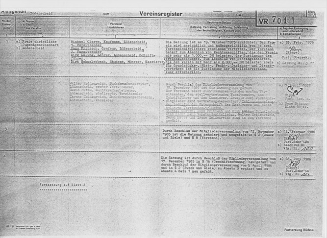 FCJG-Gründung 1976, Auszug aus dem Vereinsregister